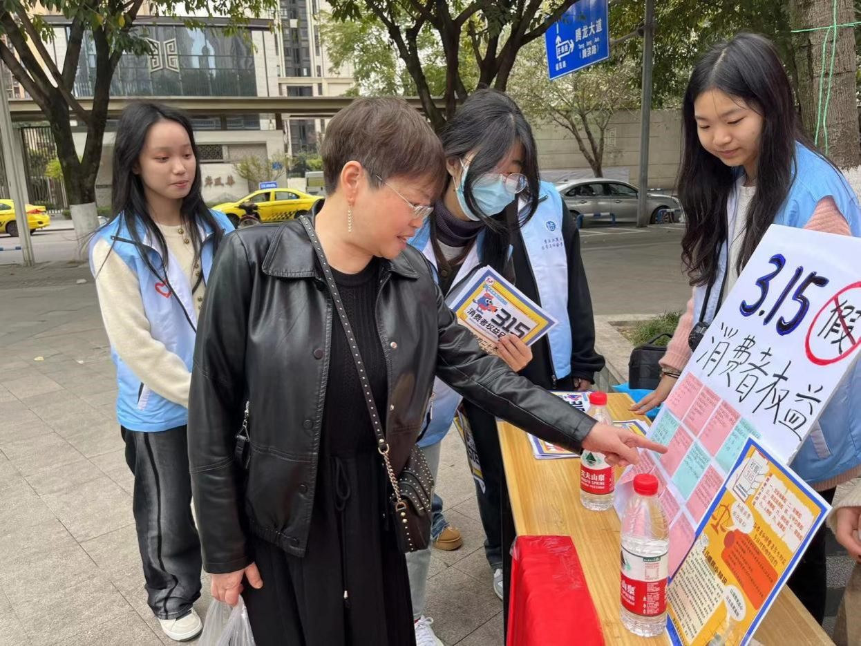 本次活动旨在进一步宣传党的二十大精神,帮助社区居民掌握消费维权的基本知识和方法,增强广大居民的消费维权意识与自我保护意识。公杰、何剑锋、向往、卢博、何祖润等多名教师组成法律义务咨询团,着重围绕《中华人民共和国消费者权益保护法》进行法律宣讲和义务咨询,为社区居民讲解消费者九大权益、七日无理由退货换货规定、消费争议解决途径等与老百姓息息相关的法律常识。与此同时,志愿者以发放宣传单的形式,向来往居民讲解日常生活中常见的消费陷阱,通过通俗易懂的语言让居民充分规避消费风险,提高群众的防范和保护意识,引导广大居民树立正确的消费观和维权观。