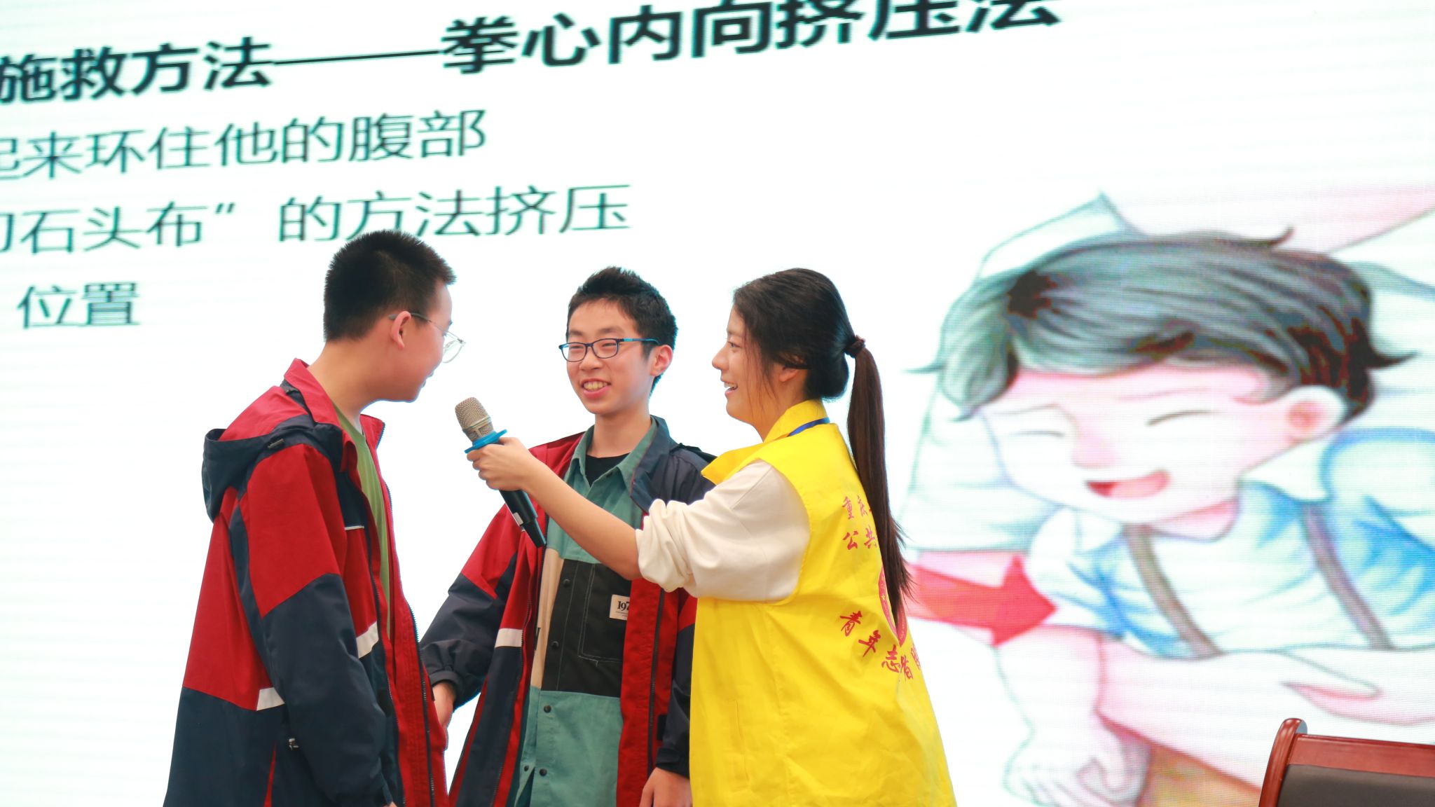 在活动的高潮部分,主持人组织知识问答。同学们积极参与互动,争相回答问题。他们凭借着刚刚学到的急救知识及自己的生活积累,自信地表达着自己的见解。为了鼓励同学们的学习热情,志愿者们准备了精美的小礼品作为奖励。最后,活动在一片欢声笑语中落下帷幕,志愿者们与同学们合影留念,共同记录下这难忘的时刻。