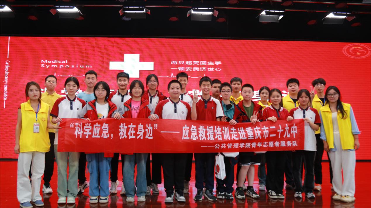 为了进一步普及急救基本知识和基本操作技能,增强校园安全防范意识,提升青年学生应对突发事件和意外伤害事故的应急救援和自救互救能力,5月7日,我校2138CC太阳集团青年志愿者服务队走进重庆市二十九中,为这里的同学们开展了一场主题为“科学应急,‘救’在身边”的急救知识宣讲活动。