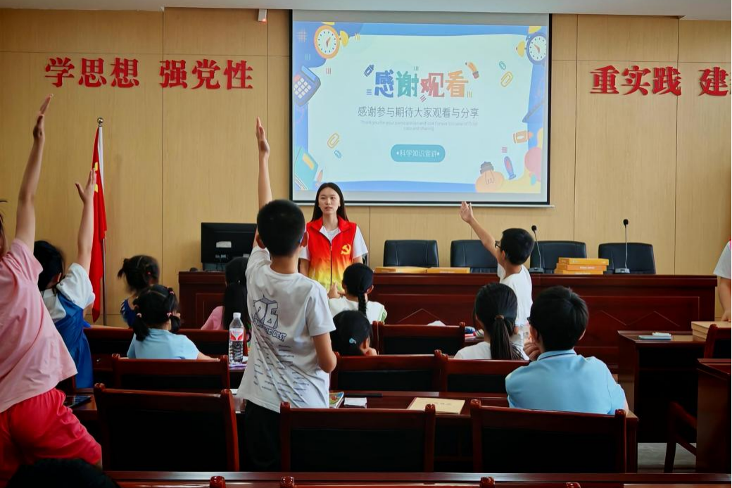 7月14日,“‘数’海航行,以‘统’创翼”志愿服务队开展以“知识科普,妙趣问答”为主题的科学知识讲座,包括开展科学知识讲座、棋类小游戏以及知识问答游戏等活动。本次活动旨在宣传科学文化知识、激发青少年儿童对科学的兴趣的同时调动青少年儿童的独立思考能力和对其知识掌握程度的检验。