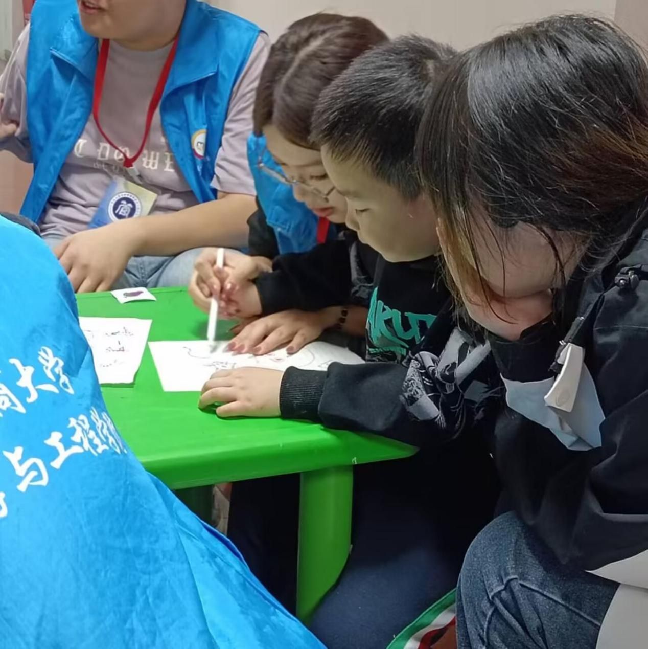 活动开始,干事耐心地引导小朋友们唱《数鸭子》。“门前大桥下,游过一群鸭”,音乐响起,志愿者们轻轻拉起小朋友的手,打着节拍。整个房间都被这温暖的歌声填满,传递着爱与希望。随后,志愿者们带领小朋友们开始了色彩之旅。小朋友用自己的方式进行绘画涂鸦,志愿者在旁边微笑鼓励。这里没有残缺,只有色彩和梦想交织,绘出的美好画卷。