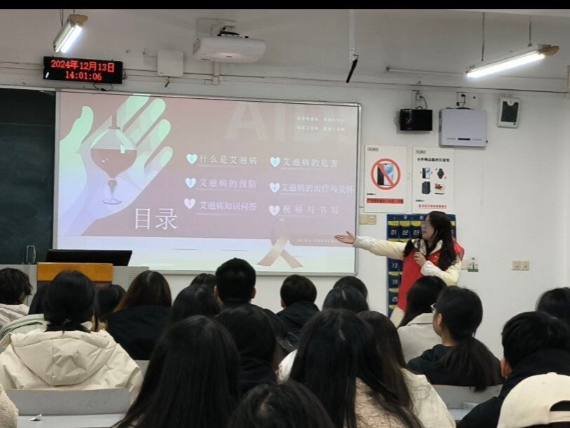 活动设置影片观看与问答环节,现场播放防艾相关公益视频,展示艾滋病防治知识及关爱艾滋病患者的意义。播放过程中,主持人穿插问题回答,同学们积极参与,充分调动现场气氛。同学们分享观看视频的感想,说到影片让他们对艾滋病有了更深入的了解,将更加关注与维护艾滋病患者的权益。在祝福语书写环节,同学们在活动宣传板上撕下对艾滋病不友好的词条,用彩笔写上鼓励话语。一句句温暖的话语,传递着对艾滋病患者的关爱和支持,绘成一幅饱含爱与和谐的画卷。
