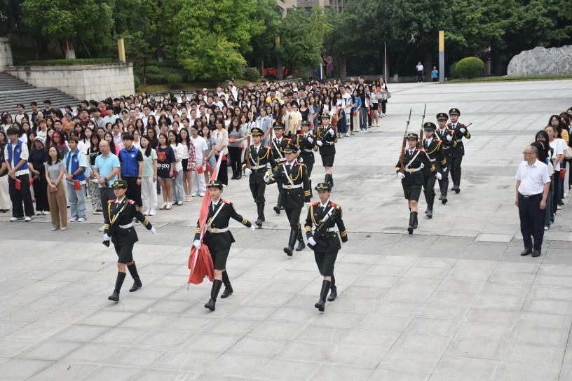 为弘扬抗战精神与爱国主义精神,培育学生爱国情怀,9月8日上午,会计学院在南岸校区含弘广场举行“阅兵忆史,强国有我”主题教育升旗仪式。党委学工部副部长杨徐勇、会计学院党委书记邓德敏、党委副书记郝颖,辅导员代表以及学院2024级全体本科生、研究生参加仪式。仪式由易世萱主持。
