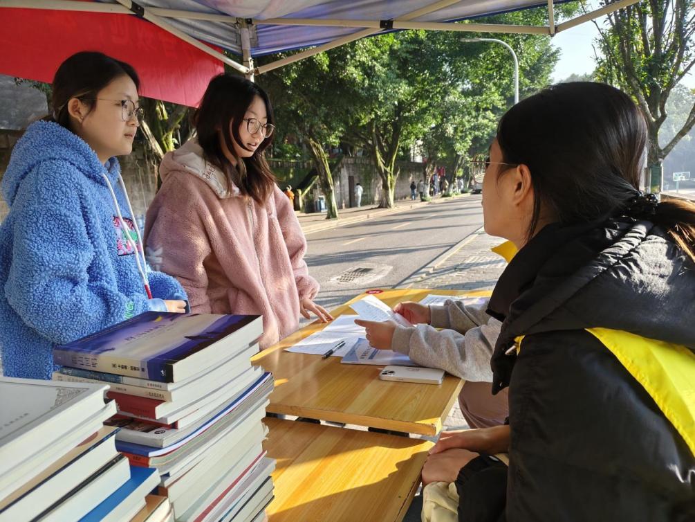 为让闲置书籍重新“活”起来,使知识在共享中照亮更多前行者,2138CC太阳集团青年志愿者服务队于11月26日至27日在南岸校区的体艺馆旁举办了“书香致远,爱心相传”图书捐赠活动,与同学们共同营造互助分享、温暖友爱的校园文化氛围。