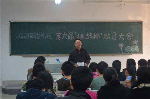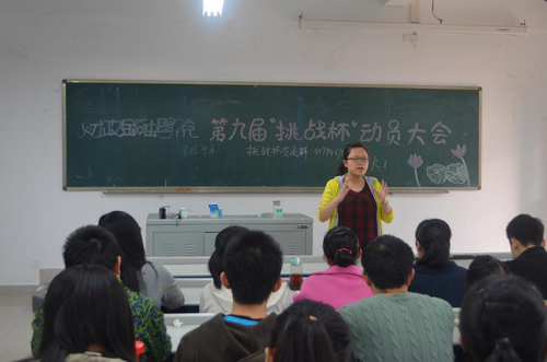 财政金融学院刘代成副书记详细的为参赛选手们介绍了“挑战杯”的历史沿革和比赛形式,增强了大家对大赛内容、作品要求的了解。随后,莫云副院长对“挑战杯”创业计划的侧重趋势进行了分析、讲解,他指出:同学们要关注社会动态,发现市场需要,努力做出有意义、有价值的参赛作品;同时,在参赛过程中要注重细节,放眼大局,团结协作,优势互补。动员大会的最后,周琴老师为同学们介绍了学院的师资支持,并祝愿各参赛队伍发挥最佳水平取得优秀成绩。