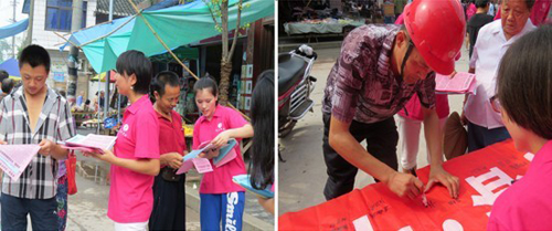 实践团成员采取发放环保宣传单与环保知识讲解相结合的方式,深入街道、社区宣传环保知识,增强了人们的环保意识。此外,针对现实生活中的环境问题,实践队队员们采取实地走访了社区、街道、家庭等,倾听民众的心声。