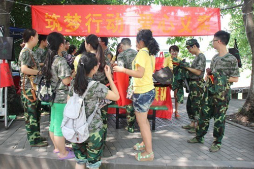 我校文学与新闻学院2013年暑期实践团开展义卖活动