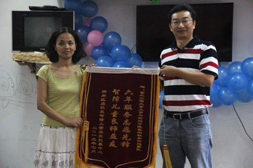启明星托养中心向文学与新闻学院实践团赠送锦旗
