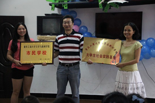 大会的第一项议程,进行文新学院“大学生社会实践基地”和“市民学校”挂牌仪式。首先,由学院党总支李华平副书记向启明星康复托养中心进行了“市民学校”与“大学生社会实践基地”的挂牌;紧接着,启明星智障儿童康复托养中心负责人何梅齐老师向我院实践团赠送了“六年服务志愿先锋,智障儿童良师益友”的锦旗。
