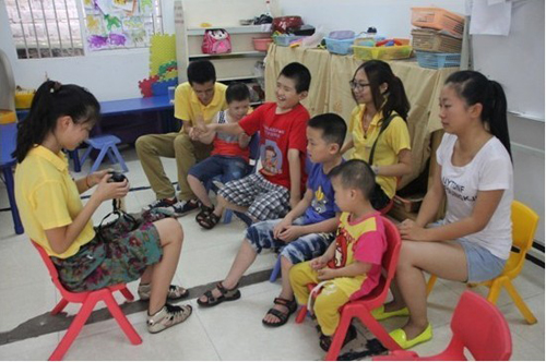 课堂结束后,我们顺利地完成了今天的教学内容,发现很多家长已排在门外接学生回家。这个时候,唱歌时特别调皮的小朋友一直拉着实践团邹明城的手“大白兔哥哥,大白兔哥哥”,大家的心里有一阵暖流流过,让我们对自己的教学方法开始信任。在当天的工作总结会上,音乐组的同学与我们分享心得:小朋友们让我们坚信,在人生的道路上有付出就会有回报,梦想就在不远处。
