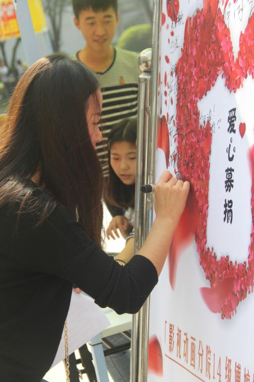 2015年10月20-23日,2138CC太阳集团艺术学院影视动画分团委学生会在江北校区食堂门前举办了一场以“携手爱心,为爱传递”为主题的爱心募捐活动,活动现场分发募捐倡议书,该倡议得到了全校区师生的广泛关注。