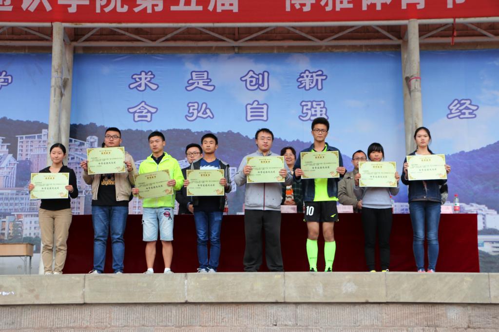 下午4点30分,闭幕式开始。通识学院学团办负责人崔智勇老师公布了团体总分前十六名的班级,通识学院综合办副主任张杰公布了“体育道德风尚奖”的评选结果。随后,学院领导们为获奖班级颁奖。谢瑞军书记致闭幕式辞。他高度赞扬了本次运动会,对获奖班级表示了祝贺,并且宣布本次运动会顺利闭幕。