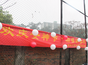 虽然天公不作美,同学们参与的积极性依然很高。尤为逗乐的是“瞎子贴鼻”,在参赛者观察好纸板上所画的没有鼻子的卡通人物的位置后,工作人员为参赛者蒙上眼睛,去三米外为卡通人物贴上鼻子,贴对位置者视为过关。其中一位参赛者蒙着眼睛一直走到纸板后面,个头高的参赛者把鼻子贴到卡通人物的额头上……场上传来阵阵欢笑声。