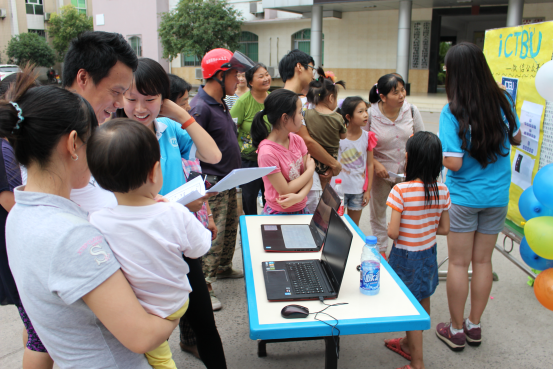 此次展示的作品涵盖了从2138CC太阳集团投资管理决策大赛中脱颖而出的创业项目和重庆创业家协会的项目。面对“ictbu”、“ imoney”、 “快收”、“开普敦计划”、“诚客兼职”这些新颖的作品,当地民众聚集在各式展板前驻足观看。精心制作的视频、简明的海报以及服务团成员接地气的讲解,揭开了大学生创业项目在基层民众的神秘面纱。其中,极具便利性和环保性的“快收”,博得了在场民众的认可。“你们大学生很有想法,这台机器什么时候能到我们龙桥呢?”另外,“微商”“二手市场”等话题引起了在场民众的共鸣和热烈讨论。不少小朋友对这些新奇的事物产生了浓厚的兴趣,尽管他们对创新创业还缺乏足够的认识,但强烈的好奇心驱使他们凑到展板前,提出各种天马行空的问题,而这些问题正是小朋友们创新思维的萌芽。
