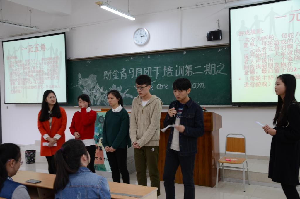 11月20日,财政金融学院青马月第二期团干培训之“We are a team”在厚德楼07222顺利举行。财金学院分团委学生会主席邓美玲、副主席李超出席本次活动,财金学院学生会各部门部长和干事代表及班团代表共同参与了此次培训。