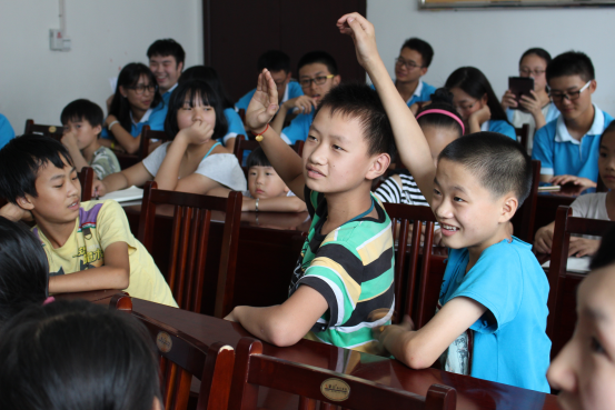 小朋友积极举手回答问题