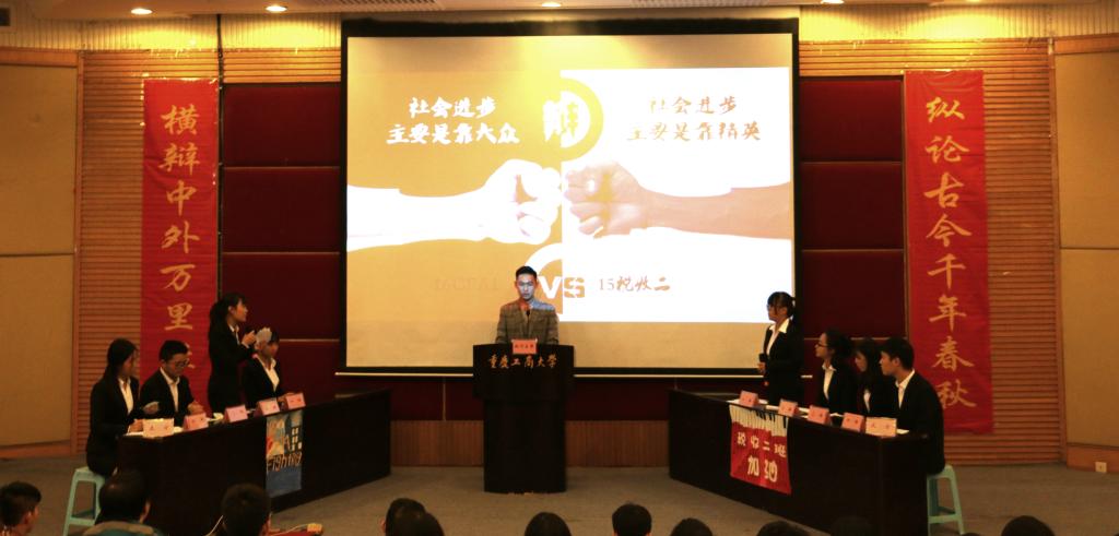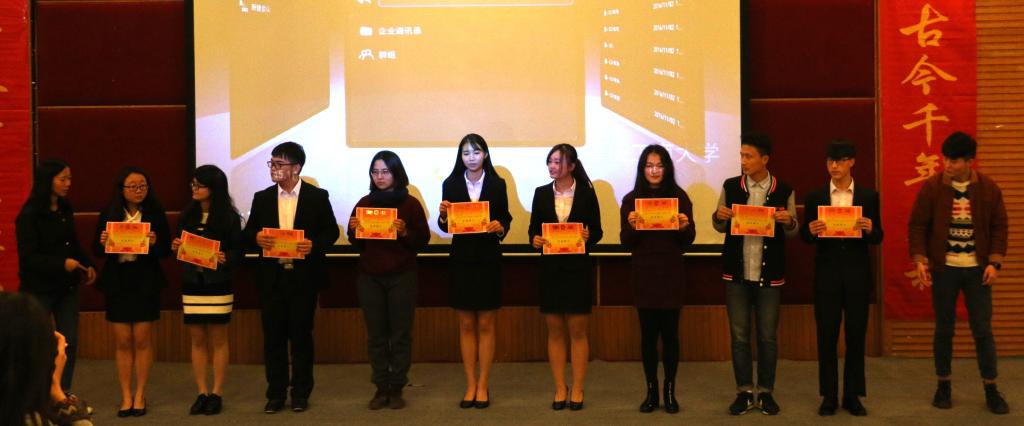 此次辩论赛决赛共分为立论、盘问、驳论、攻辩、自由辩论以及总结陈词六个环节。经过正反双方成员简洁的自我介绍后,双方就本次辩题——“社会进步主要靠大众还是靠精英”展开激烈辩论。辩手们在各环节中思路清晰,逻辑严密,引经据典,字字珠玑。其中,双方选手就“改革开放带来的社会进步究竟是由邓小平等精英推动还是由人民群众的实践检验推动”这一问题展开深入分析与辩论,一度将比赛推向高潮。在双方四辩总结陈词后,整场比赛告一段落,评委离席打分,接下来,财金辩论队为大家上演了一场精彩绝伦的表演赛,赢得阵阵掌声,接着由学生会副主席庞世强学长对本次比赛进行点评,徐阔老师对本次活动进行总结,最终,由主持人宣布比赛结果,反方队伍15级税收二班荣获第十五届“财金杯”辩论赛冠军,正方队伍16级CFA获得亚军,正方四辩徐晓获得本次比赛“最佳辩手”称号。获奖选手与之前已经决出的季军15级金融四班代表队、15级金融五班代表队和多位优秀辩手共同参加颁奖仪式,并与老师们一起合影留念。