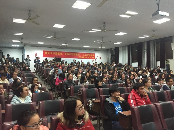 这是一场思想的洗礼,这是一次精神的震颤。11.27纪念活动纪念了革命烈士,全面着贯彻党的教育方针,实施素质教育,拓展了德育内涵继承革命光荣传统,弘扬了爱国主义精神,增强了团员的先进意识,悼念了11.27大屠杀中英勇就义的烈士英魂,让我们在79年后的今天勿忘国耻,为了祖国的繁荣昌盛而努力奋斗。