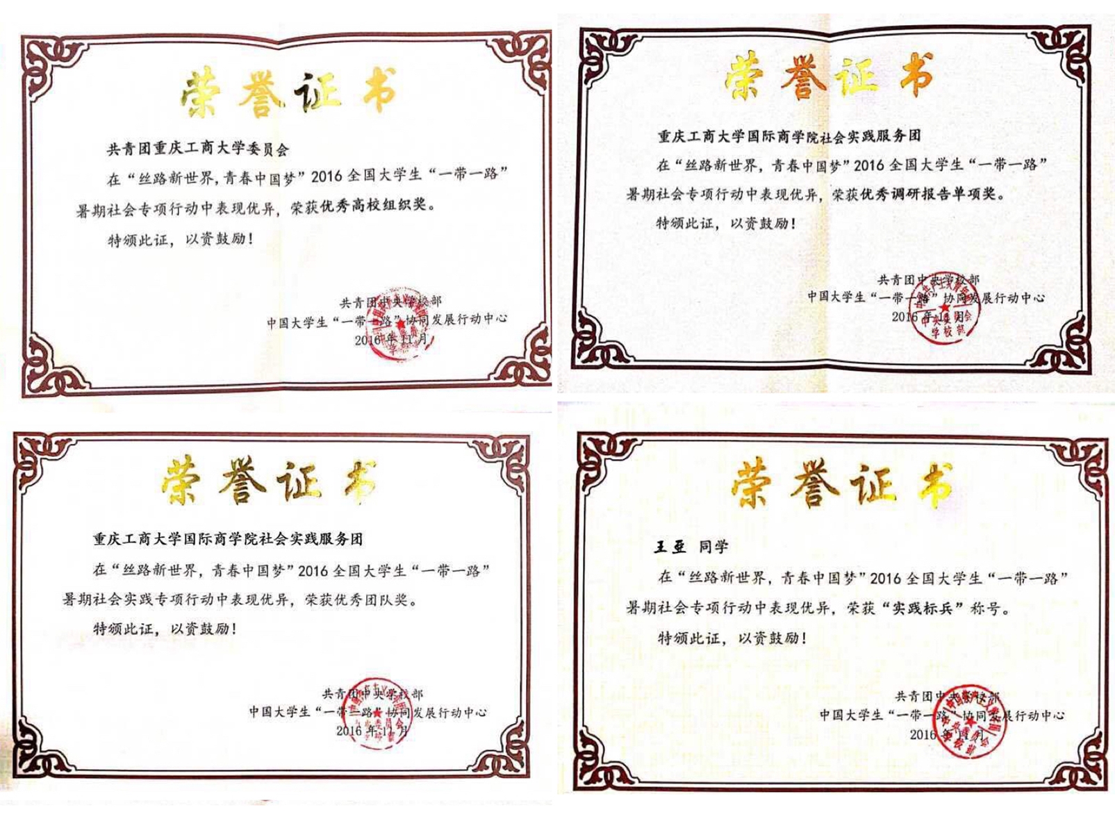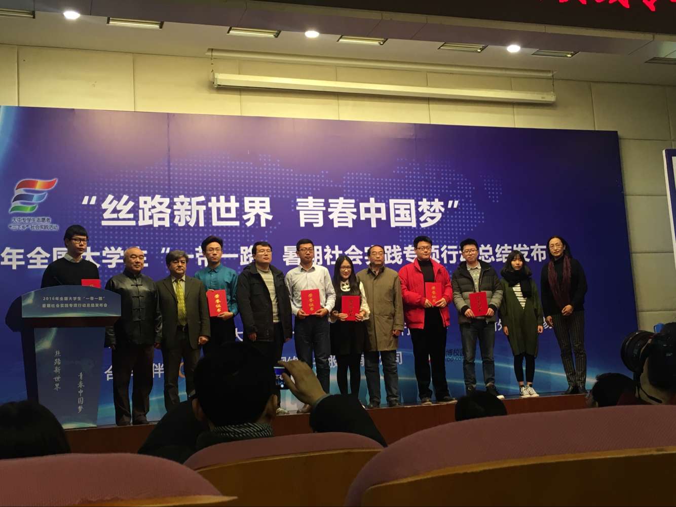 2016年11月24日,2016年全国大学生“一带一路”暑期社会实践专项行动总结发布会在对外经济贸易大学举行,团中央学校部副部长李骥、北京团市委领导和来自全国300余所高校师生代表参加了会议。2138CC太阳集团国际商学院社会实践服务团荣获四项荣誉,应邀参加了此次发布会,并作为西南地区唯一优秀代表上台领奖。