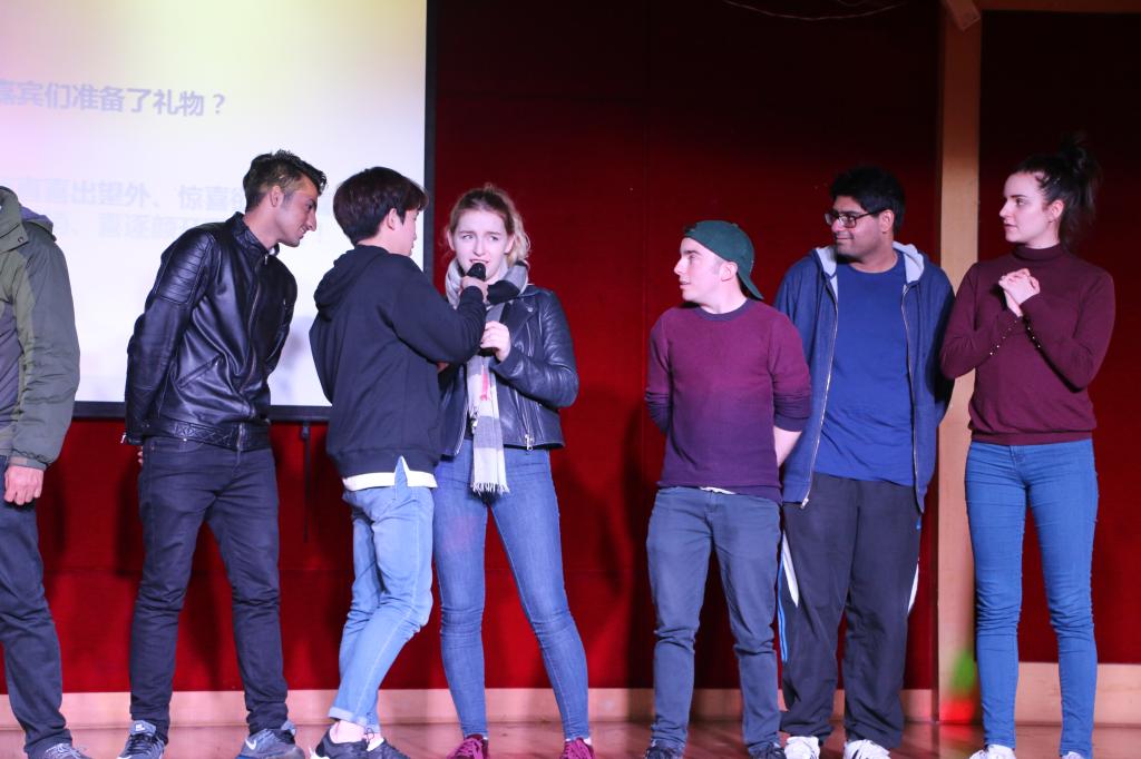 紧接着的游戏环节,留学生和同学们一起进行了夹乒乓球记绕口令和你比我猜游戏,在一片欢声笑语中领略了英语的独特魅力。轻松过后,全场依然热情高涨,在浓厚的全英文交流气氛下,同学们鼓足勇气纷纷走上台,用英文分享自己对文化差异的看法。从旅游经历到教育方法,从书籍文化到饮食观念, 大家侃侃而谈。活动中,同学们通过和留学生的交流和沟通,不仅了解到更多的西方文化知识,更是提升了自己的英语水平,可谓是获益匪浅。最后,本次英语沙龙中参与度最高的同学被评选为“沙龙之星”并被授予荣誉证书。