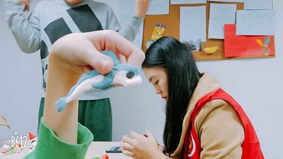 志愿者教做橡皮泥