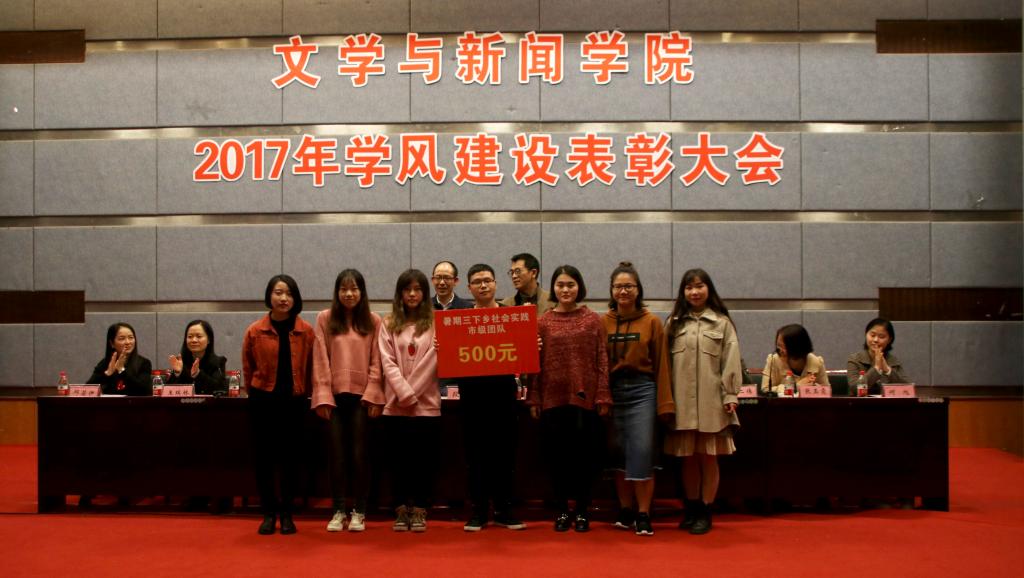 本次大会,以14级汉文班为代表共9个班级荣获“学风建设综合奖”; 14级新闻二班、15级新媒体班则共同荣获“学风建设单项奖”;14新媒体班、15新闻一班获得“学习成绩优秀奖”荣誉称号;14级汉文一班、15级汉文班收获“图书阅读优秀奖”荣誉称号;14级广告一班、15级广告一班荣获“学科竞赛优秀奖”;14级新闻一班、15级汉文班班级荣获“公寓表现优秀奖”称号。院全体领导共同向获奖的先进班集体颁发了荣誉证书和奖金。表彰会上,15级汉文班班长李昕煜作为获奖班级代表向在座人员分享获奖感受,他指出“一个班级的责任、习惯、氛围最为重要”。随后,文新学院院长蔡敏上台讲话,他结合 “十九大”精神,强调学院未来发展要做到 “以评促改、以评促建、以评促强”,并对同学们提出期望,希望大家在评估中表现优秀 拿出好成绩,展现文新学子的精气神。