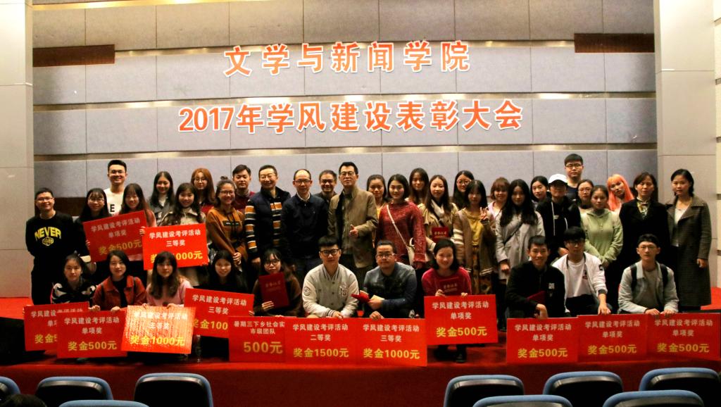 2017年10月27日,文学与新闻学院在南岸校区七教07100学术报告厅召开了文学与新闻学院2017年学风建设表彰大会。学院党委书记段庸生、党委副书记李华平、院长蔡敏、副院长刘宏毅、康清莲及各专业系主任共同出席本次会议,文新学院全体辅导员、学生干部、获奖团队、个人及15、16级学生代表共同参与本次会议。