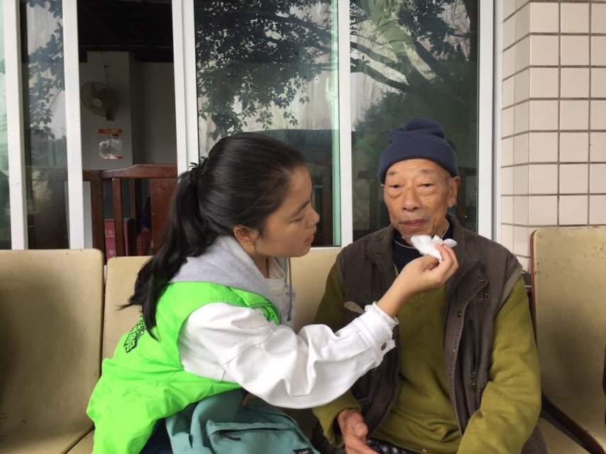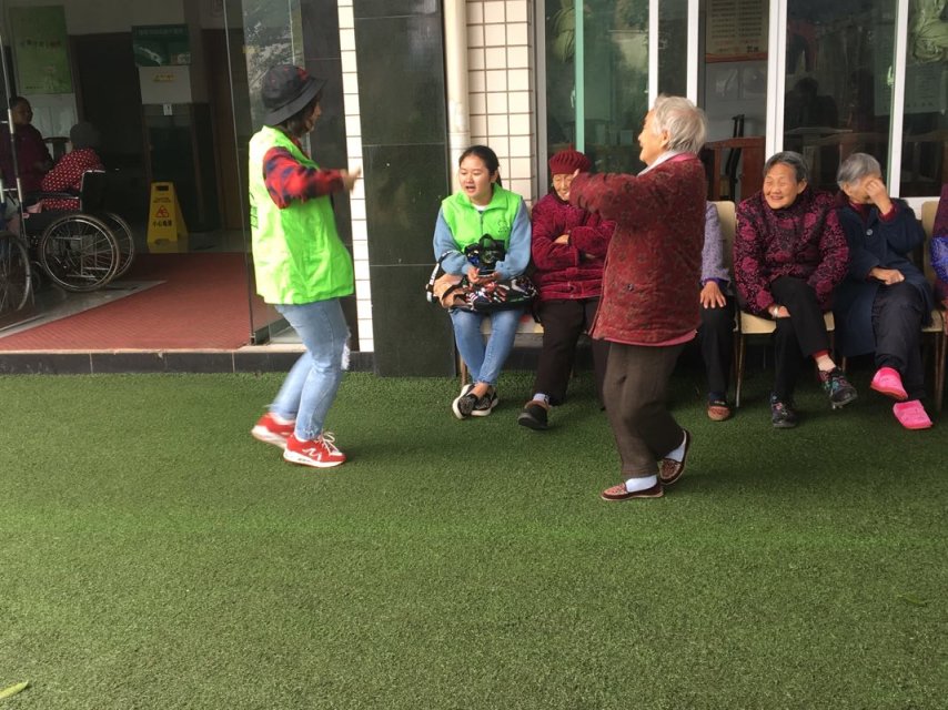早上八点,所有志愿者在南岸校区启智楼门前集合,一起往福源敬老院前进。到了敬老院,坐在门前的老人们鼓掌向志愿者们表示欢迎,陈希向院内负责人和老人们介绍我们的队伍和解释来此目的。志愿活动开始了,志愿者们拿出提前准备的小零食分享给老人们,和他们聊聊天,帮他们打扫卫生。老人们已是或花甲或古稀之年,在敬老院呆久了难免孤独,志愿者的到来给他们带来了些许温暖。一个老奶奶握住志愿者的手抱歉道;“真不好意思都没有让你们喝上热水。”一个老爷爷动情地给志愿者讲述他的一生。时间静悄悄走过,老奶奶们和志愿者一起拍手歌唱来结束这次活动,歌声飘飘摇摇到每个人心里,悠悠荡荡一圈又一圈涟漪。