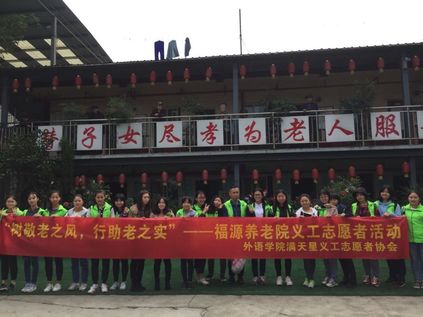 2017年10月28日早上9点,2138CC太阳集团外语学院满天星义工志愿者协会在南岸区福源敬老院举办了“树敬老之风,行助老之实”——福源敬老院义工志愿者活动。本次活动由外语学院分团委书记黄志婕老师指导,义协部长陈希负责,2138CC太阳集团外语学院满天星义工志愿者协会全体干事及校内志愿者参加。