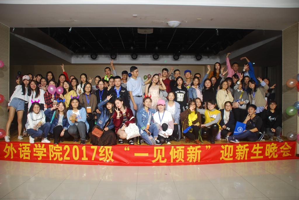 2017年10月15日晚7点,由外语学院分团委学生会文艺部主办、外语学院党员服务站协办的2017级“一见倾新”迎新生晚会在兰花湖学生活动中心成功举办。本次晚会由17级商英3班的王宁和17级商英2的王超主持。