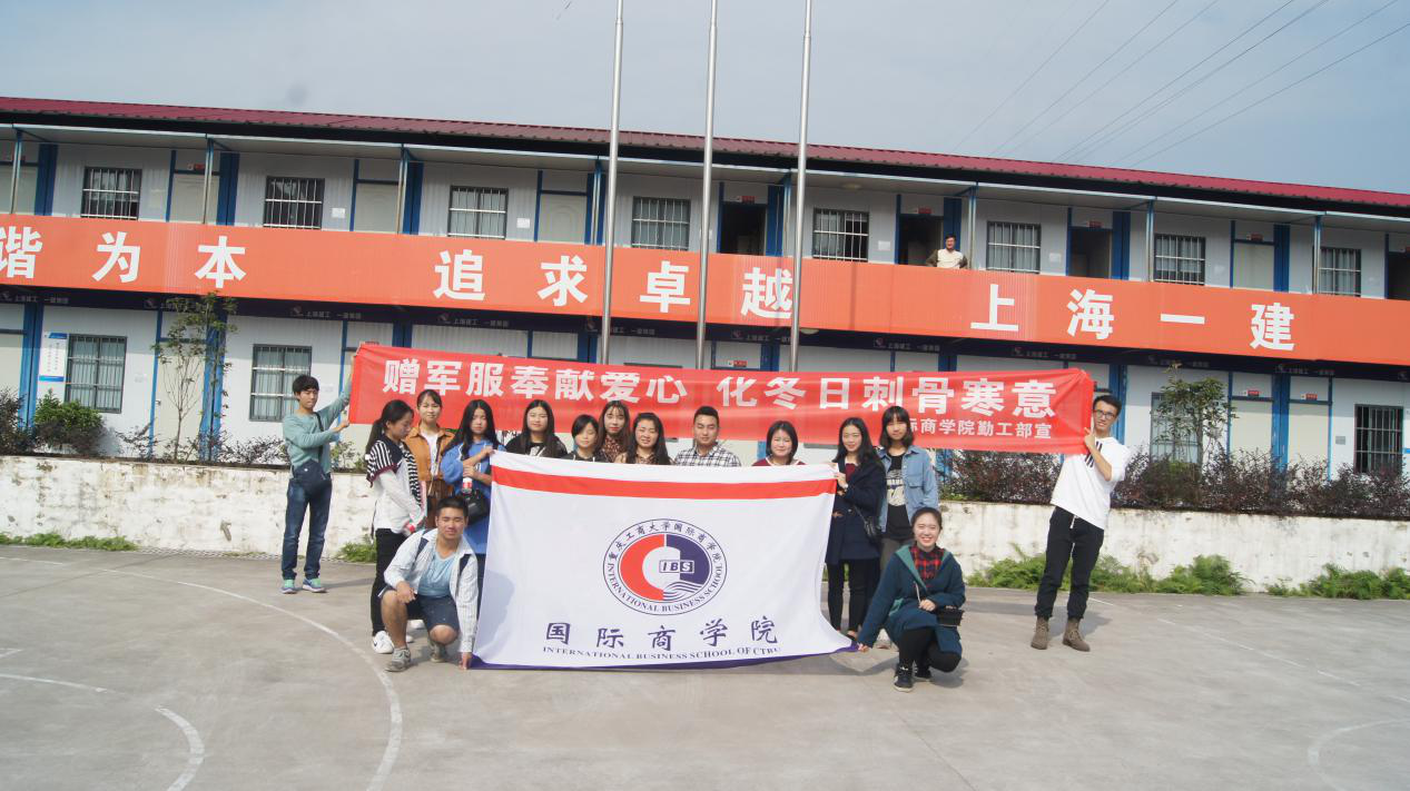 2017年10月28号下午2:00,迎着久违的和煦阳光,国际商学院分团委学生会勤工部在重庆九公里开展了一年一度的军服捐赠活动。国际商学院学生会勤工助学部全体干事和上海建工民工队的工人参与了本次活动。工地叔叔阿姨手中的100余套军服凝聚了国际商学院学生的爱心与祝愿,希望他们在秋日里也能感受到学生们如暖阳般的温情。