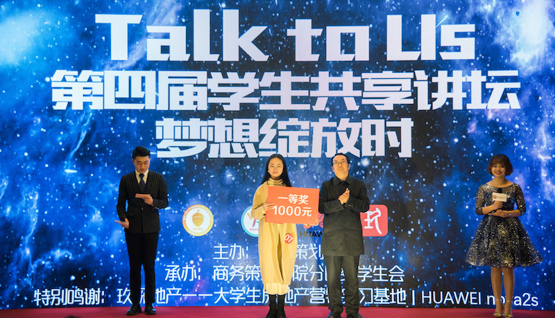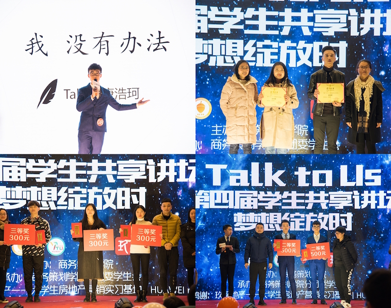 思维的火把纵情燃烧,炽热而真诚。比赛正式开始前,现场大屏幕开始播放本届TTU自初赛开始的盛况,向在场观众展示着本届比赛的风采。随后正式进入万众瞩目的梦想绽放时刻,进入决赛的八位Talker按赛前抽签顺序依次上台进行分享,他们以精心的准备,饱含深情的阐述,回馈每一个支持他们喜爱他们的人。他人即地狱;一号Talker张善记通过对自己命运多舛往事的回忆,告诉大家不要总是一味地迎合他人的喜好,成为别人眼中的自己,要活得自我一点,按照自己的方式,去度过一生。低头,你错过了什么;二号Talker张刘用故事让观众们了解到低头会使自己错过了美景,错过与自己亲人的交流,他的讲述给观众们带来的是一份份的温暖与感动。茫茫人海,与你为伴真好;三号Talker唐一平在茫茫人海里讲述那些遇见过的人和正遇见的人,感激出现在她生命里的人们,温暖了她的世界。抬头微笑,且令我讲予你听;四号Talker俞超凡用声情并茂的语言将自己在参与升旗仪式时的一些所想所感分享给大家听,带给大家一个非常简单却可以时刻抬头微笑的理由,引发民族自豪感和对自己的沉思。燃起观众朋友的爱国情怀。平凡的优秀;五号Talker江瑜用她学英语,学习网络,以及在比赛中想要放弃却又选择坚持的故事,告诉大家为优秀努力不要怕不要急不要停。爱在记忆中找你;六号Talker陈屿航以生死为引,由自己的亲身经历细语爱在黎明破晓之前,记忆永在黑暗之中与你相伴,回忆不朽,肉体会消失,但爱不会。把拳头松开;家是社会最小的单元格,在那一扇扇看起来风平浪静的门后面,仔细听——有人在尖叫。七号Talker李美林,直面痛苦,将身上的淤青展示给大家看,她告诉了观众们,在家庭的战争中,有人逃跑,有人杀死了自己的丈夫,还有更多更多的人在黑暗中选择沉默。于是她选择站出来,望大家松开拳头再去拥抱亲人。我没有办法;八号唐浩珂用他生活中的懊悔,带给大家所谓没有办法事情的解决办法。八位Talker,八份不一样的人生之旅;讲述完毕后,在场的观众对他们直击心灵的分享报以热烈的掌声。在短暂的网络投票后,最终七号李美林荣膺一等奖;四号俞超凡与八号唐浩珂获得二等奖;一号张善记、五号江瑜、六号陈屿航获得三等奖;二号张刘及三号唐一平获得优秀奖。至此,第四届Talk to Us学生共享讲坛梦想绽放时刻步入尾声。