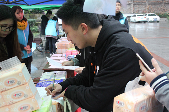 自2013年与营盘村小学建立志愿服务关系至今,经济义协与山区孩子们一起成长。据了解,原先在小学教书的老师因为年纪大了于今年无奈退休,目前仅有一名老师在简陋破旧的环境中坚持为3个年幼的孩子传授知识、照顾他们的学习和生活。在志愿者的热心倡导下,校园里的不少同学都积极地参与了此次活动。尽管天气寒冷,同学们参与活动的热情却并未受到影响,前来购物订货、捐款留言的同学络绎不绝。每卖出一件商品、写下一条留言、收到一次捐款,都能从中感受到同学们满满的心意,一点一滴汇成爱的暖流传递给营盘村小学的孩子们。