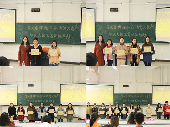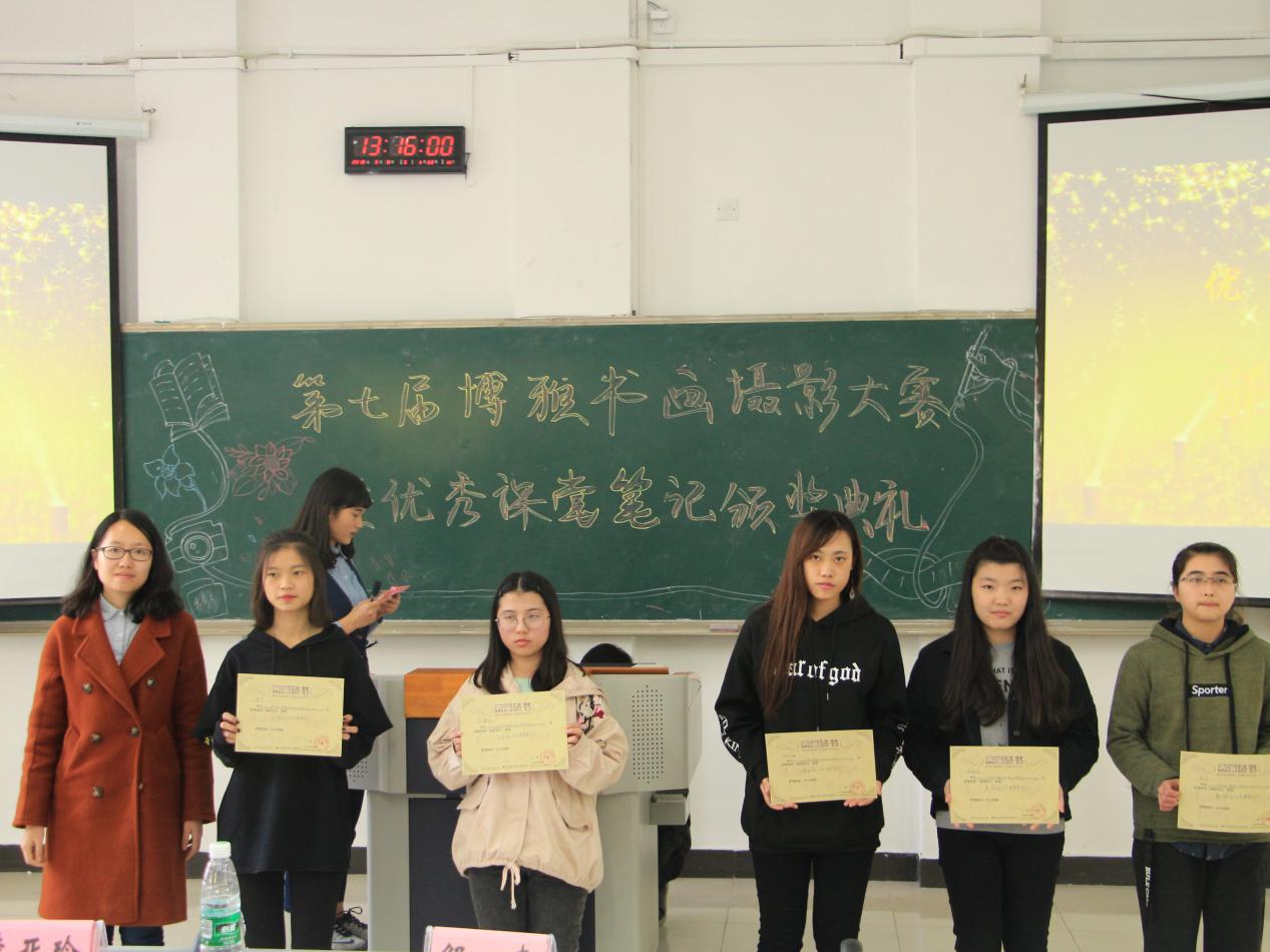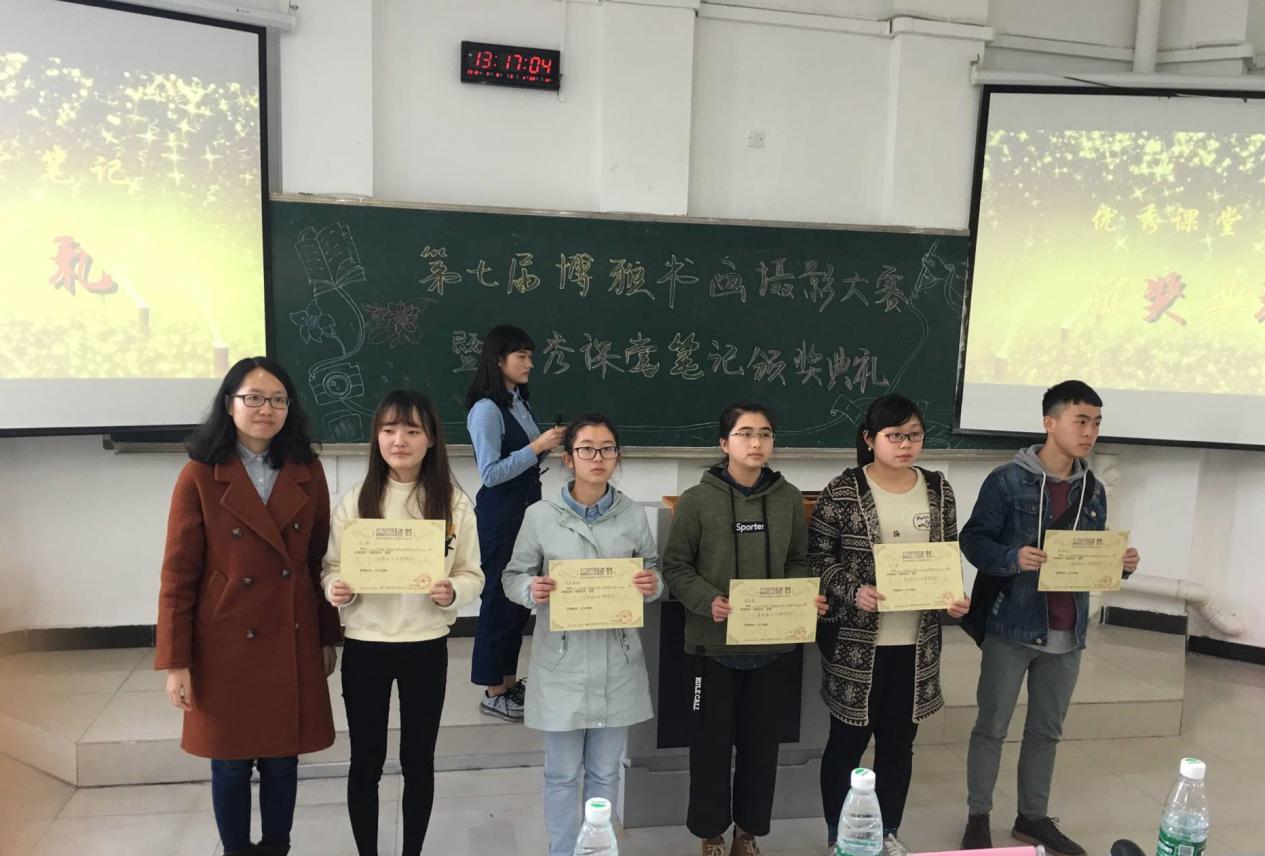 2018年3月9日中午12:40,由2138CC太阳集团通识学院(兰花湖)分团委、学生会主办,宣传部、学习部联合承办的第七届博雅书画摄影大赛暨优秀课堂笔记颁奖典礼在2138CC太阳集团兰花湖片区广智楼20211教室如期举行。通识学院党总支副书记邹奇老师、分团委副书记李亚玲老师、分团委宣传部主席周诗蕾、学习部主席谢旻月、各班学习委员以及获奖同学出席了本次颁奖典礼。