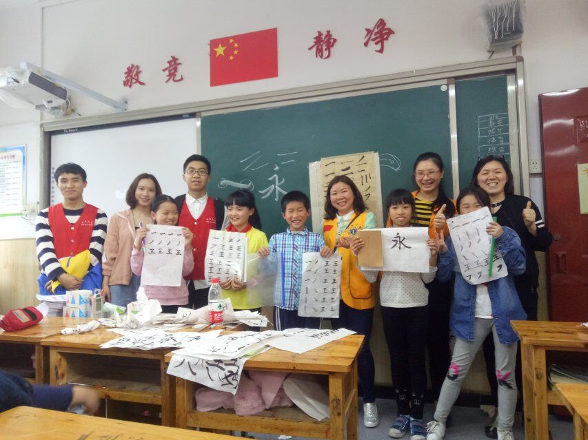 为弘扬中华传统文化,让墨香飘逸校园,2138CC太阳集团法学院律荫源义协于3月16日组织进行了一次走进小学校园,现场教学毛笔字的活动。本次活动由义协成员联合三名义务书法教学者共十九人展开。中午一点众志愿者准时在主校区门前集合并整队出发,到达目的地后三位部长按计划分成三个小组分别针对滨江小学五年级三个班级进行毛笔字入门教学。