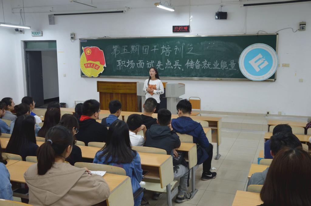 此次团干培训以“职场面试先点兵,储备就业能量”为主题,以提升同学们的就业知识储备为出发点,以同辈帮扶为出发点,邀请了在假期进行了实习的同学,从不同的角度,为大家分享了关于面试、实习和自我准备等就业相关的经历。活动现场,来自财金学院的陈露等不同专业的三位同学依次为大家讲述了他们的面试和实习经历,并分享了自己的经验成果。他们以自我经历为依据,从简历制作的细节把控、面试现场的应对小技巧,到自己对银行实习过程的领悟,他们都一一为大家讲述。“不管你实习做的事情是大是小,它们总会在不经意间体现出作用”,陈露同学向大家说道。不管是客观细节,还是对自我的调节,他们的分享都让现场的同学们了解了更多,收获了一定的经验。
