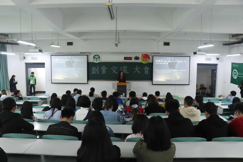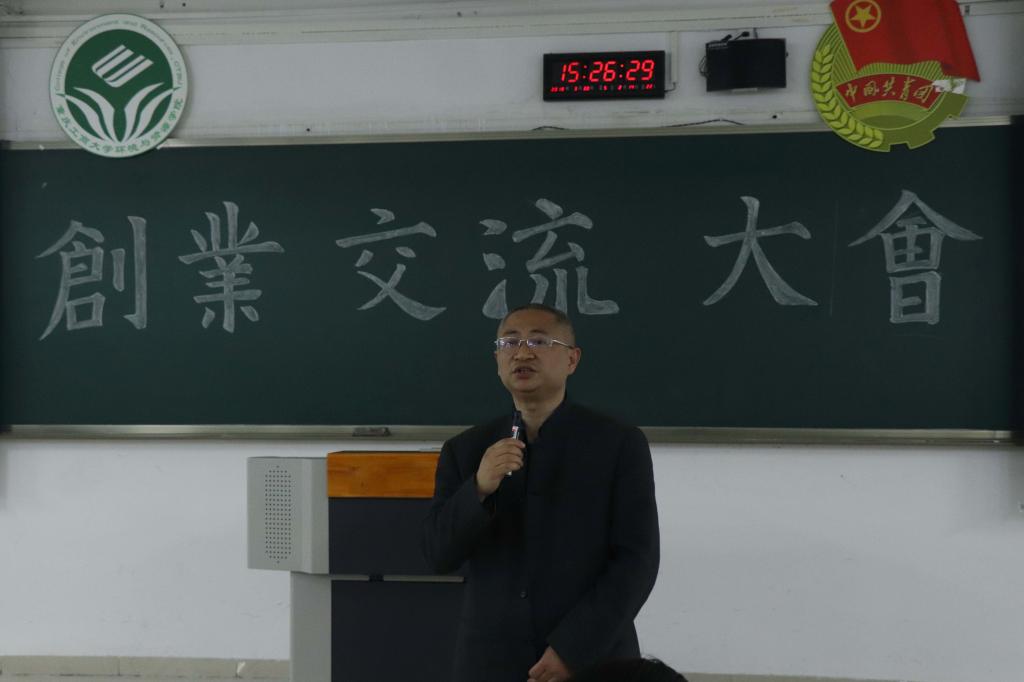 为引导广大学生积极参与创新创业,培养和提高大学生正确的创业意识、创业素质及创业技能,2018年3月30日下午,环境与资源学院分团委学生会于07122举办了以“敢闯勇创、力争卓越”为主题的创业交流大会。环资学院分党委书记王竹青副教授、环资学院唐春红教授、创业学院李晓明老师、“翠湖工厂”创业电商平台负责人王利刚出席了本次活动并担任主讲嘉宾。