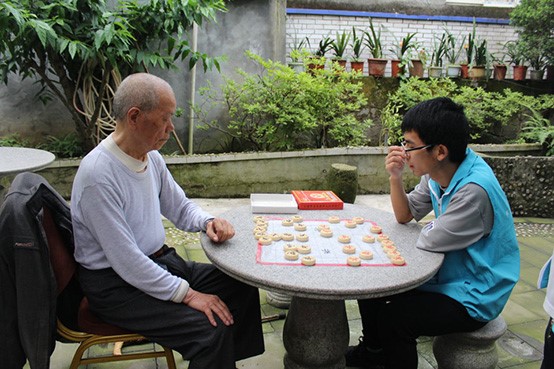 志愿者和老人在下象棋