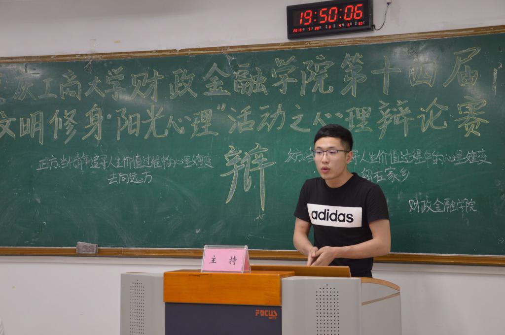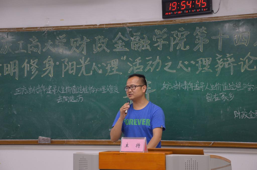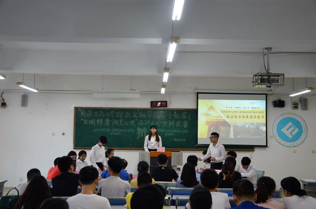 为推动我校学生心理健康工作的发展,营造积极向上的校园文化氛围,财政金融学院于2018年5月20日19点在博智楼07405举办了第十四届“文明修身·阳光心理”系列活动之心理辩论赛。财政金融学院研究生党支部书记杨宁老师和学生第一党支部书记文理老师莅临比赛现场,校辩论队队长张桂旗、国际商学院辩论队队长黄雯以及会计学院辩论队队长谭智杰担任本次比赛的评委。