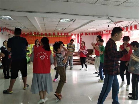 “一步一步向你靠近,一圈一圈贴我的心……我们的未来,是最美好的存在……”在游戏中,志愿者与学员们的关系更近了,有主动牵手志愿者想要一起跳舞的学员,也有想要带志愿者一起回家的学员。在真诚的陪伴下,真心和真心彼此感知,心与心的距离越来越近。