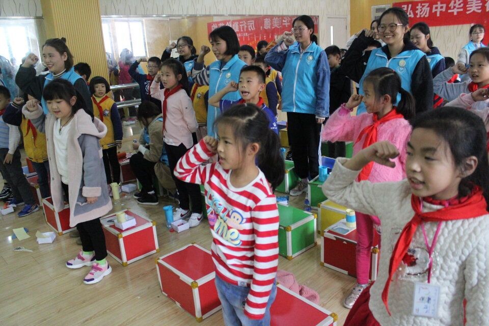 志愿者与孩子一起宣誓