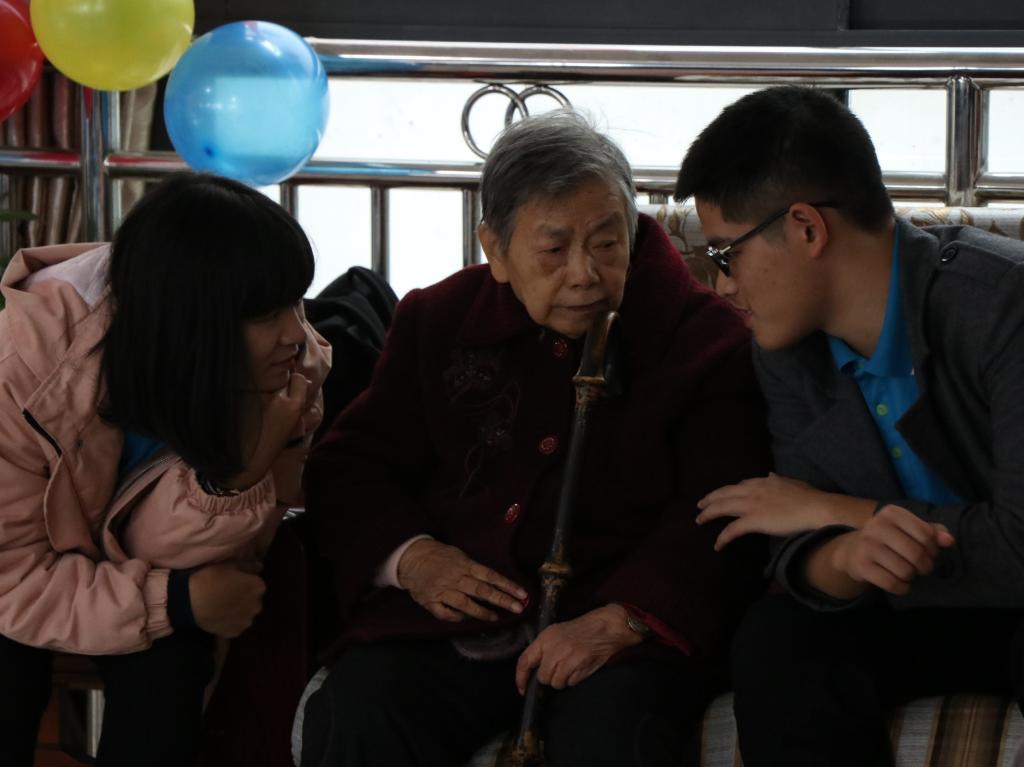 14:30分,通识学院(江北)情暖重阳节活动正式开始。主持人张术平和李健宁用重庆话的问候将活动拉开帷幕。接地气的广场舞《最炫民族风》、经典歌唱作品《外婆的澎湖湾》同台献艺。由志愿者们自导自演的改编小品《三打白骨精》将活动推向高潮,一度使老人们开怀大笑。一位老奶奶毫不逊色、一展歌喉,用《团结就是力量》引起全场合唱。志愿者们讲演并行,手把手教会了老人们按摩穴位的方法,并给与了老人们精心准备的礼物。最后志愿者们与老人们拍下合照,在欢声笑语中圆满完成本次活动。