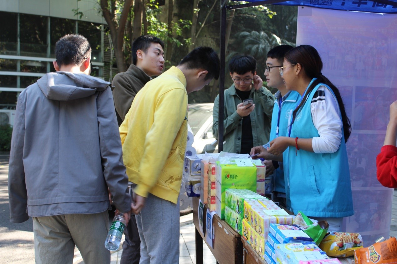 自2013年与营盘村小学建立志愿服务关系至今,经济义协与山区孩子们一起成长。志愿者通过参加比赛、线上宣传的方式,长期对营盘村小学进行宣传帮助,在政府的帮助下,现在孩子们已经有了全新的教学楼。同时,志愿者依然保持对孩子们的关注,希望通过校园义卖的方式来帮助他们。在志愿者的热心倡导下,校园里的不少师生及其他人员都积极地参与到此次爱心活动中。尽管天气已经转凉,同学们参与活动的热情却并未受到影响,前来购物订货、捐款留言的同学络绎不绝。每卖出一件商品、写下一条留言、收到一次捐款,志愿者们都能从中感受到同学们满满的心意,一点一滴汇成爱的暖流传递给营盘村小学的孩子们。