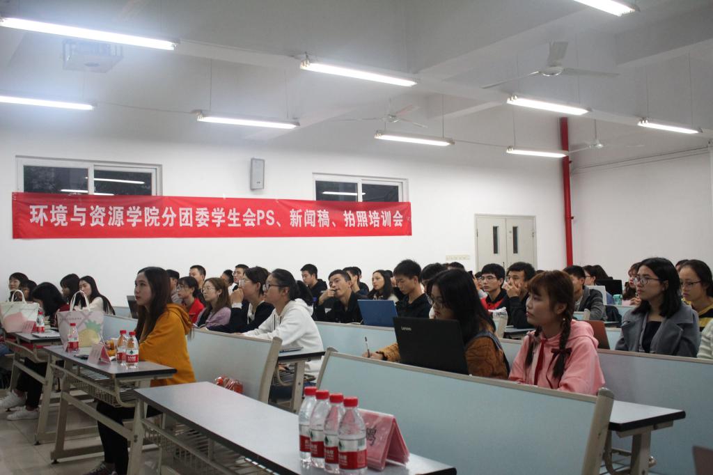 为使刚进入学生会的干事更快更好地融入学生会工作,学习更多技能,10月19号18:00点,环资学院分团委学生会在南岸校区兰花胡片区广智楼20301教室举行“拍照、新闻稿、ps培训”活动。本次活动有幸邀请到了新闻中心影像部记者吕霄和、新闻中心采编部部长张佳佳、16届环资学院分团委学生会主席韩瑞担任培训嘉宾。参加此次培训活动的有17届学生会主席、各部门部长及干事代表。