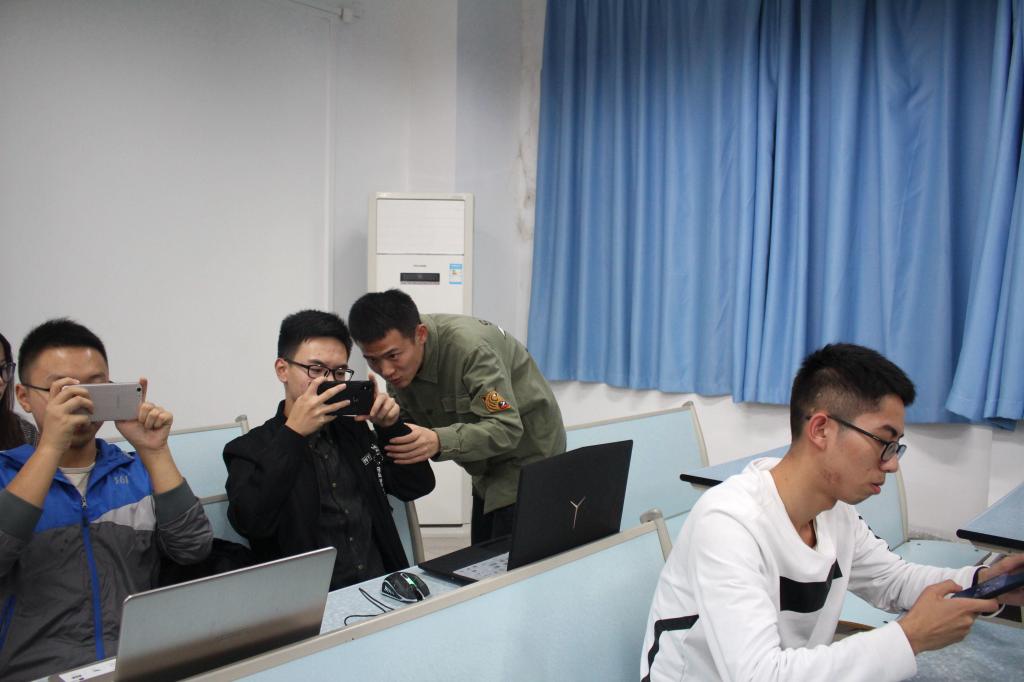 吕霄和学长指导同学拍照