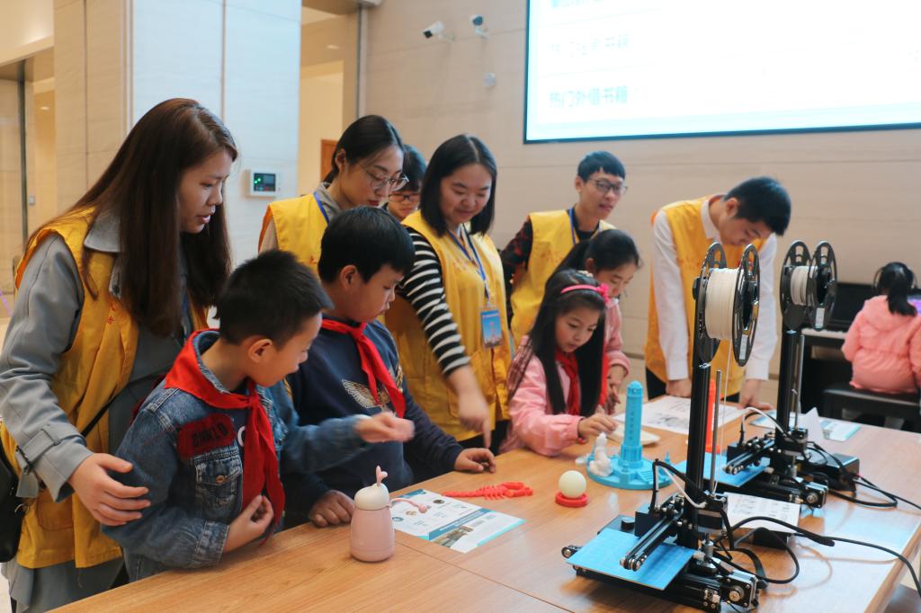 座谈会后,志愿者们一对一的带领着小朋友开始了他们的大学校园之旅,对图书馆等各教学楼及创新创业园等建筑风景进行参观,并为他们讲解、介绍。许多孩子还向志愿者诉说起自己学习、生活上的困扰,询问今后上大学等问题,对大学充满了好奇与憧憬,志愿者们耐心地给他们解答,鼓励他们努力学习。