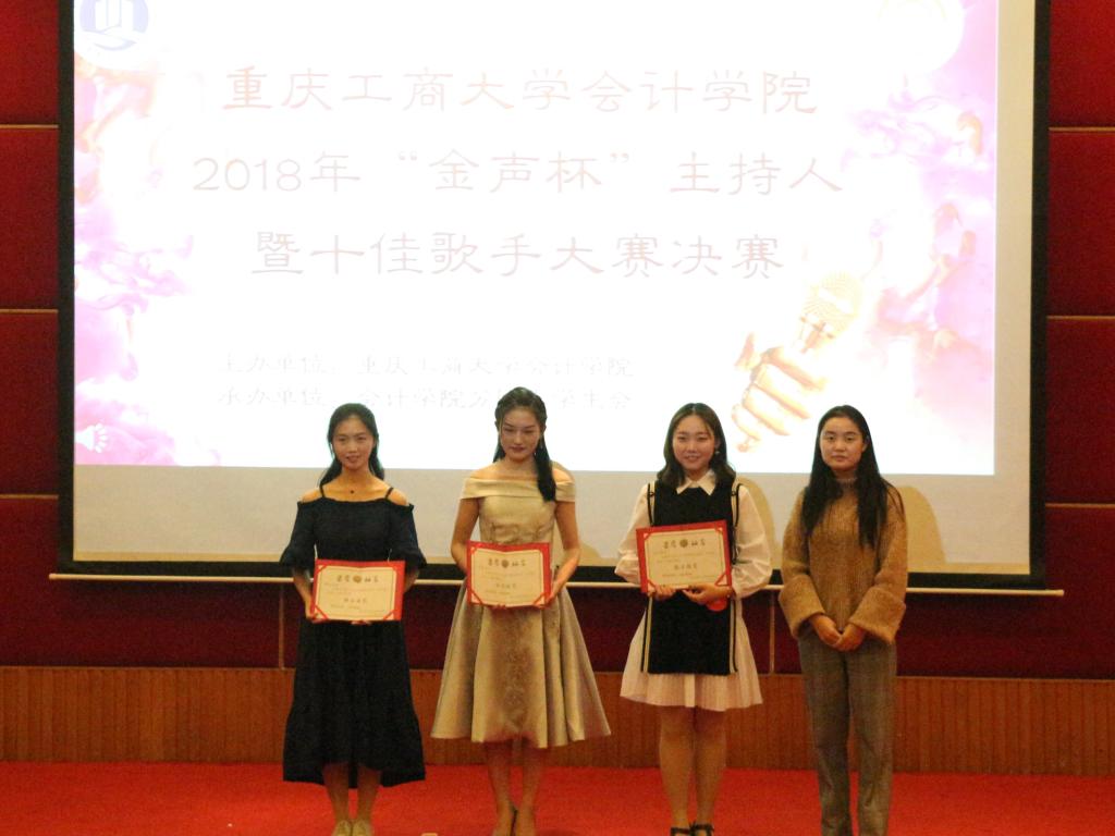 “展金声主持风采,听深秋天籁之音“,为繁荣校园文化生活、营造积极向上健康文明的校园文化气氛、为学生提供展示自己才华的舞台,同学们期待已久的会计学院2018年度“金声杯”暨十佳歌手大赛决赛于10月28日18:00在南岸校区博智楼7200举行。会计学院分团委书记程洁老师,第16届会计学院分团委学生会主席黄义袁,第五届“金话筒”十佳主持人、大学生艺术团播音主持分团团长李彤,新闻中心主播部部长金潇,第22届天木槿音社团部长钟佩江,木槿之声音乐达人秀十强选手卫河东以及各学院学生会主席团出席了本次比赛。