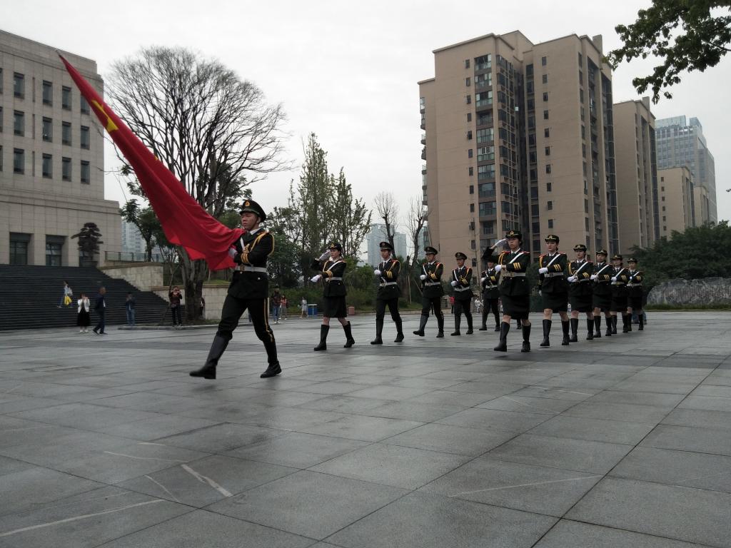 国旗护卫队向国旗台行进