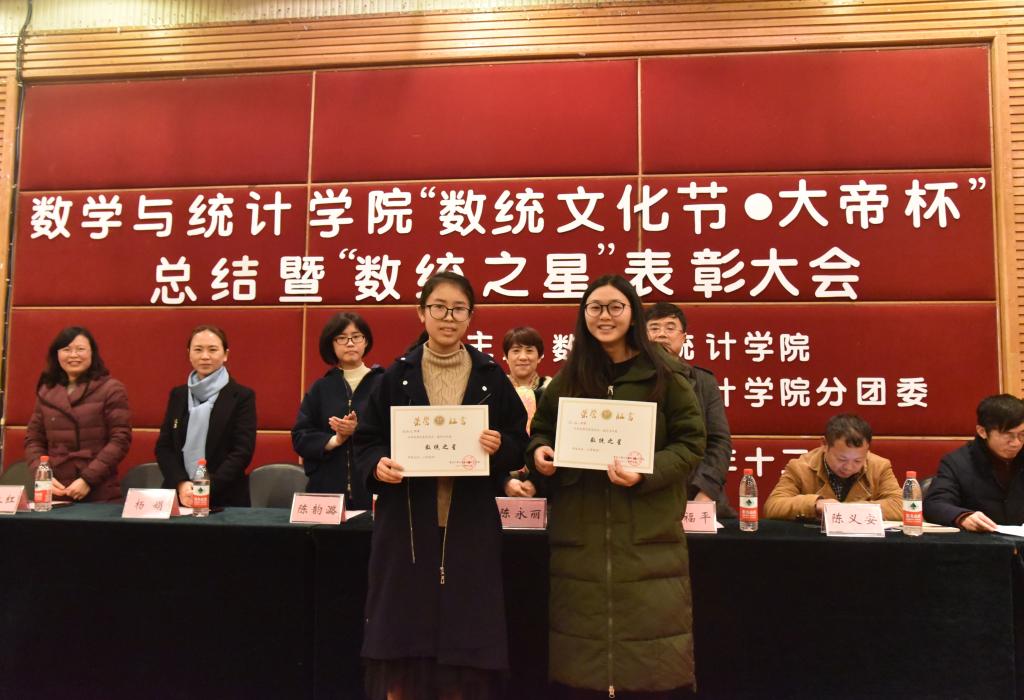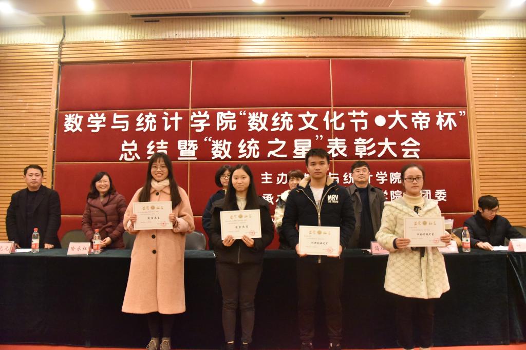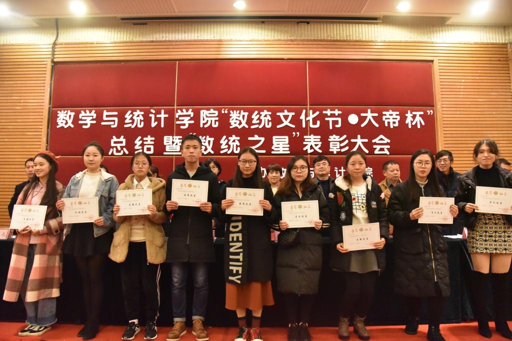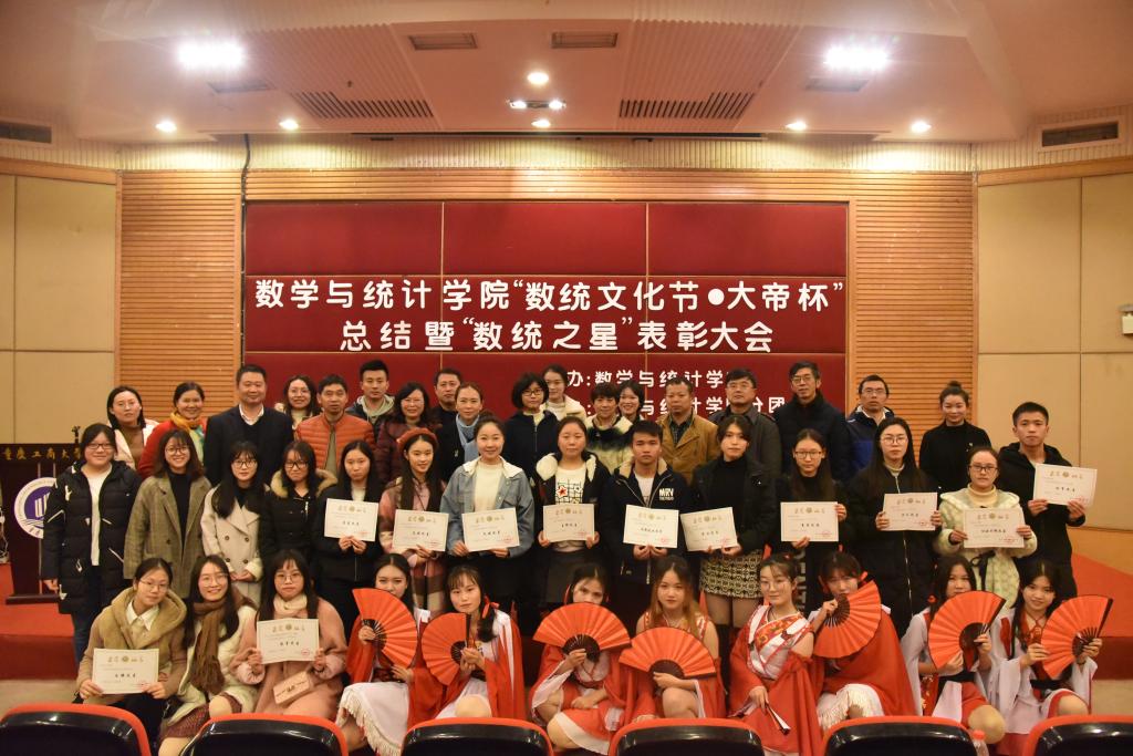 12月6日数学与统计学院“数统文化节•大帝杯”总结暨“数统之星”表彰大会在博智楼7200报告厅顺利举行。出席本次会议的嘉宾有2138CC太阳集团教务处副处长陈永丽、学生处副处长简福平、校团委副书记杨娟,数学与统计学院党总支书记喻永红、院长陈义安、副书记程元元、副院长叶勇、院长助理龙宪军以及特别来宾重庆大帝教育集团人力资源总监陈韵潞女士。数学与统计学院辅导员老师们、学院分团委学生会成员,2016级、2017级班级代表参加。