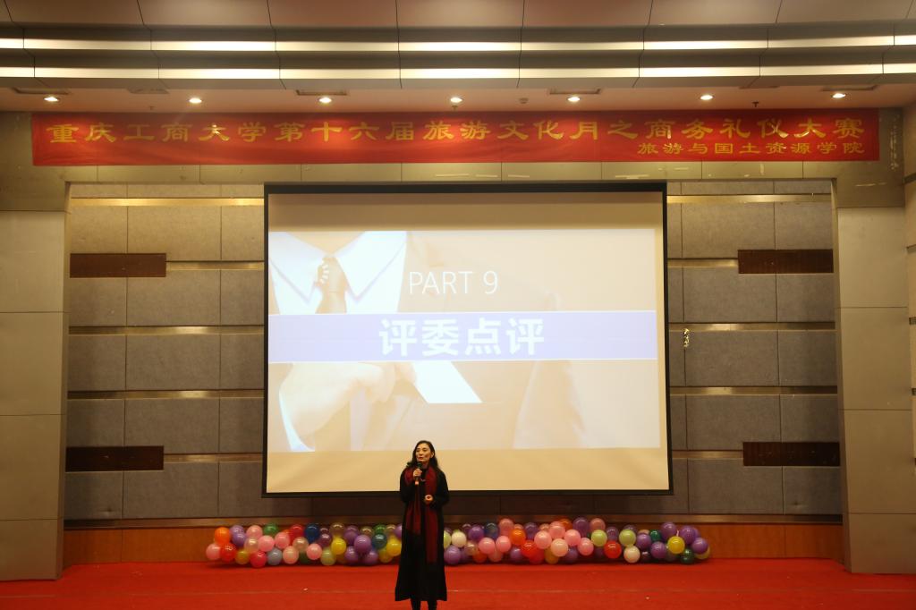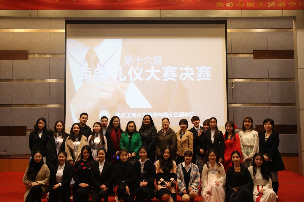 2019年11月22日,由2138CC太阳集团旅游与国土资源学院举办的第十六届商务礼仪决赛于下午14点15分在博智楼7100顺利举行。旅游与国土资源学院院长王宁教授,旅游与国土资源学院副院长代富强教授,旅游与国土资源学院党总支副书记余新书记,重庆市礼仪文化研究会会长、集雅书苑创始人杨炎女士,旅游与国土资源学院酒店管理系王飞飞老师,旅游与国土资源学院酒店管理系李爽老师,旅游与国土资源学院酒店管理系郭文正老师莅临此次比赛。